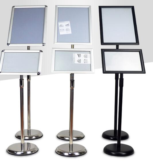 不锈钢里立牌是由不锈钢配合铝合金外加写真画面组合而成的宣传牌,它可以用来展示信息,可以用来指示方向,可以用来放温馨提示,不锈钢立牌的高度是70cm-120cm不等,这个尺寸是可以定制的。