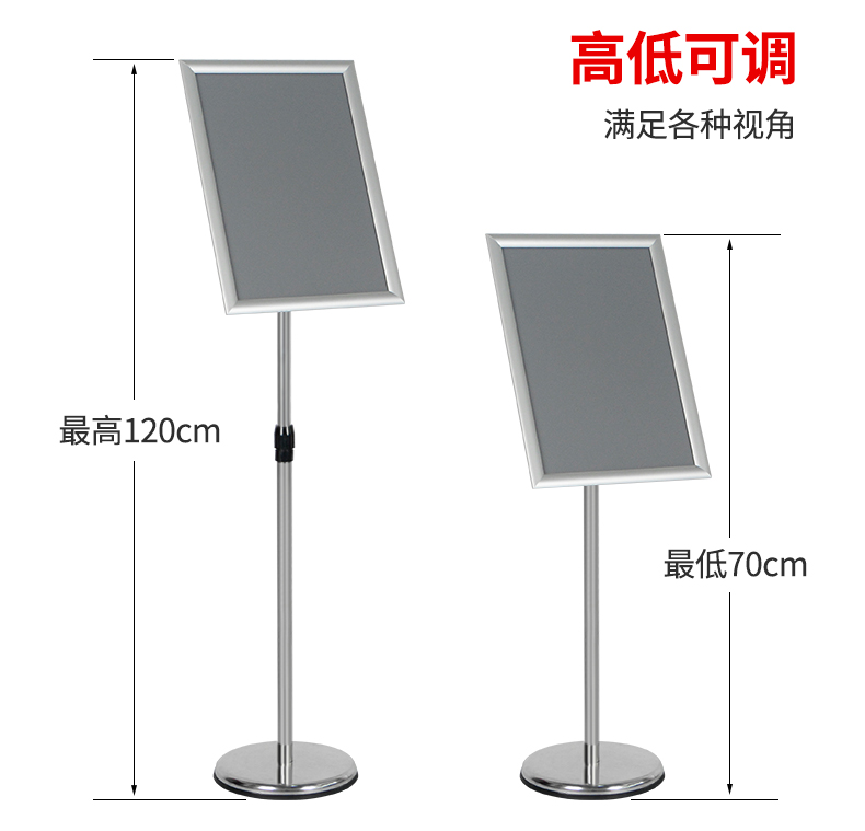 不锈钢立牌的高度是70cm-120cm不等,这个尺寸是可以定制的。